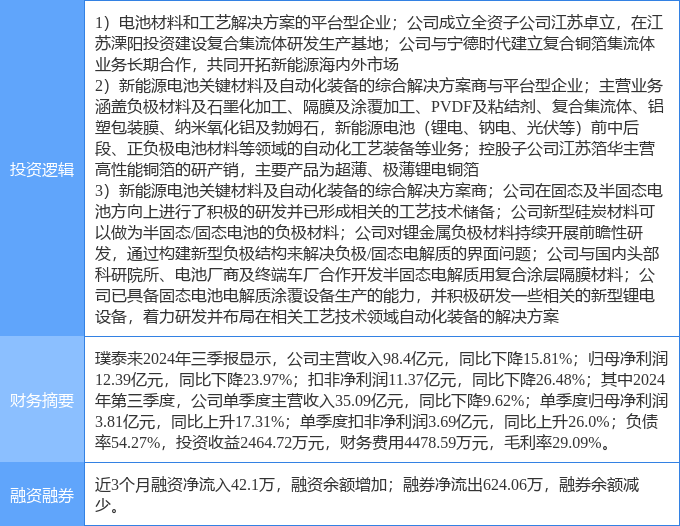 该股为固态电池,锂电池,PET复合铜箔概念热股,当日固态电池概念上涨5.93%,锂电池概念上涨5.8%,PET复合铜箔概念上涨5.55%。